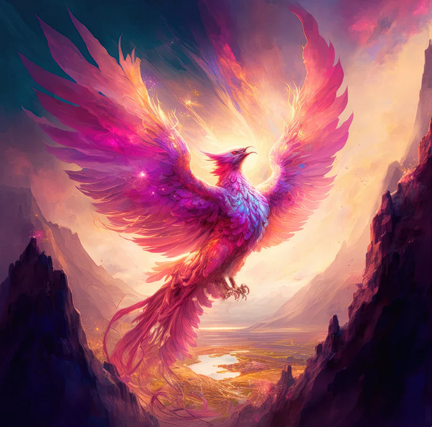 La mayoría de las ocasiones esta bestia aparece como un brillante pájaro de color magenta envuelto en llamas.